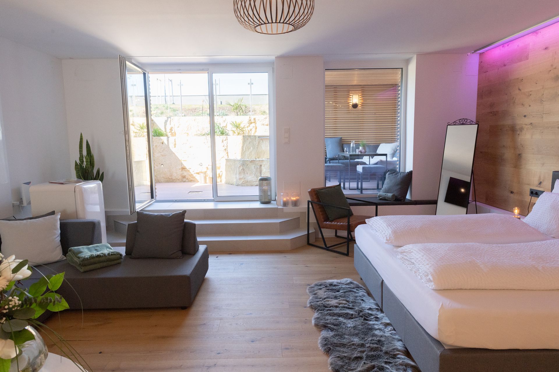 Individuelles Design eingebettet im Grünen. Jedes studioAPPARTMENT und DOPPELZIMMER mit eigener Terrasse. Geniessen Sie Ihre Lieblingsjahreszeit.