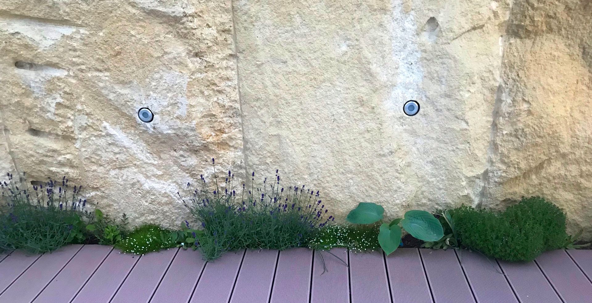 The real sandstone from broken slabs from the St. Margareten quarry is the highlight of the house. It was used to fortify the slopes of the terraces. Shells can still be found in it, which refer to the area of the house that was once the sea.
